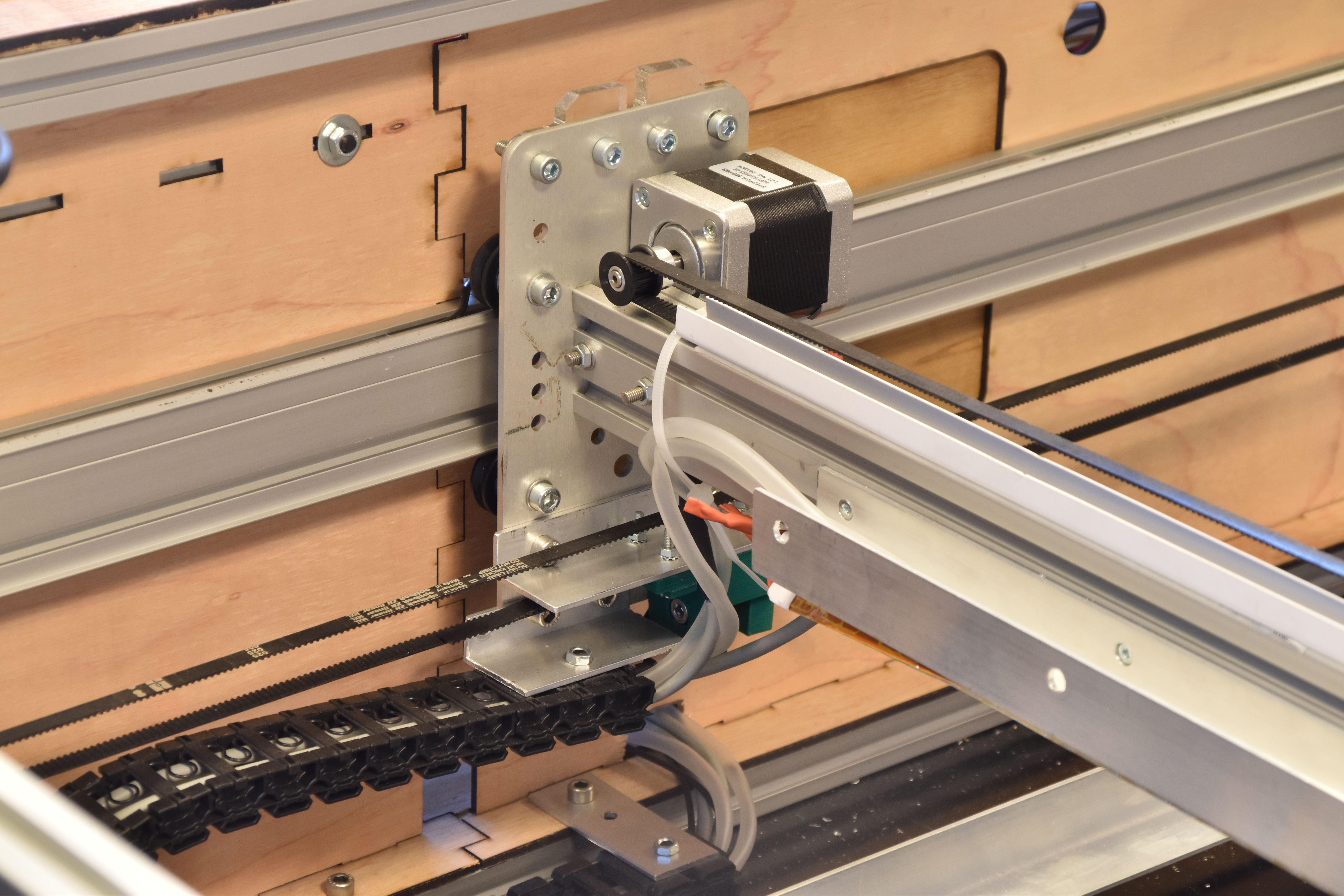 We also see the right-side Y-timing belt with a glimpse of the green spanner below the X-beam.