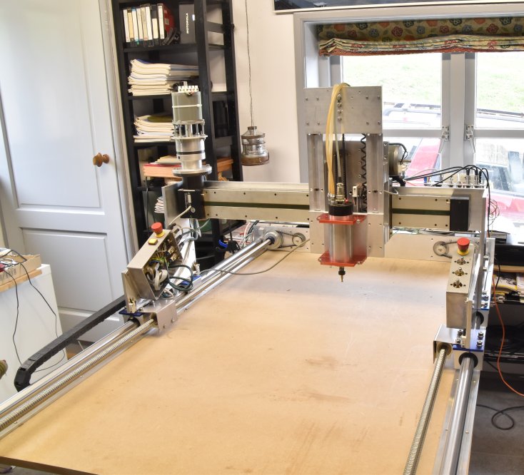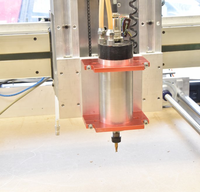 Spindel: een 800 Watt High-speed motor met ER11 opname en waterkoeling. Maar er kunnen allerlei andere dingen op, Zie onderaan voor een greep uit de mogelijkheden.